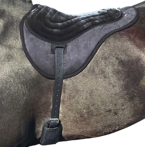 With breathable, non-slip material against the horse to prevent slipping, the Best Friend Comfort Plus Bareback Pad offers you a padded, comfortable ride on the trail. Patented, breathable suede is bonded to a high density polymer with a cushy pad short nap fleece for extra comfort for the rider. Leather reinforced billets connect to the non slip, breathable girth making the Comfort Plus Bareback Pad the perfect choice. In Navy or Black. One size fits most average size horses.