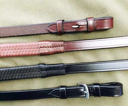 From KL Select’s economy line, their Black Oak Rubber Reins are a traditional rubber rein. Black reins have buckle ends; Brown reins have Black Oak Rubber Reinshook-stud/pin ends. 5/8″ wide x 54″ long.