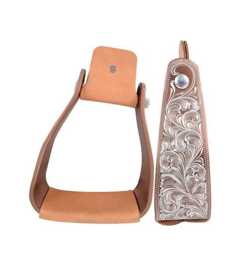 Cashel Engraved Slanted Stirrups are wide and angled for greater foot comfort and reduced torque of the knee. This is why these handsome stirrups can head out on the trail with you as well as into the show pen. The beautiful floral design is edged with zig-zagging for a nice finished look.