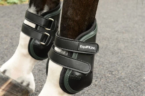EquiFit’s AmpTeq Hind Boots have a cupped shape under the fetlock that lessens the chance of hyper-extension upon landing. They encourage a more controlled landing and ride-away after the jump, putting less stress on the fetlock and surrounding area. AmpTeq Hind Boots with Color Binding are easy to attach with hook and loop straps threaded through roller D-rings. The non-removable ImpacTeq liners are sewn inside and mold to your horse’s leg for a custom fit. These boots are available in Medium or Large with your choice of leather color binding. The main body of the boot is black. The edge color can be Navy, Green, Red, or Brown. Match your saddle pad, ear net, and jacket or simply pick your favorite color. All colors in both sizes may not be in stock but we always have them on order.