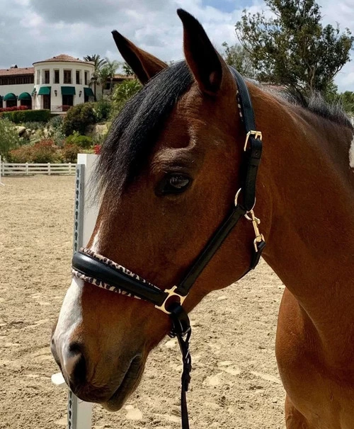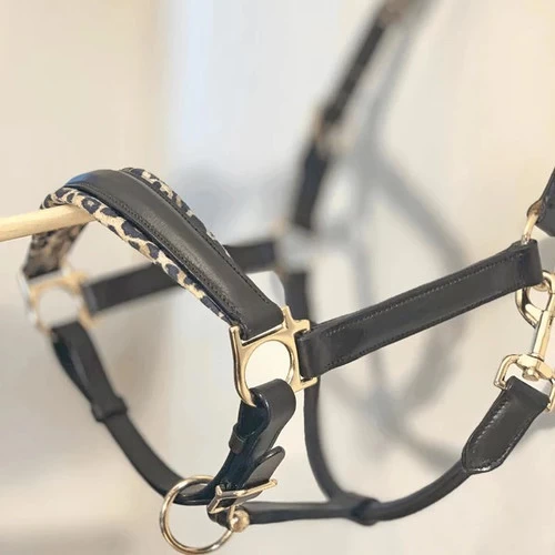 Halter Ego Safari Halter captures the essence of exotic wild beauty with its sublime combination of leopard print and black or brown leather. High quality European vegetable tanned leather is the starting point for the bold Safari Halter and brass fittings make the ideal finishing touch.