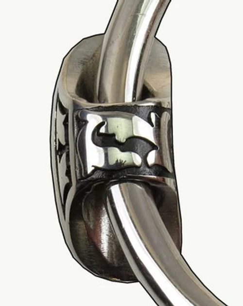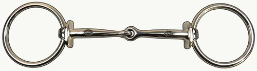 Jeremiah Watt Never Pink Ring Snaffle has stainless steel rings that move freely through a longer mouthpiece end, guarding the corner of the mouth from getting pinched. This Jeremiah Watt bit has just the right amount of weight to allow clear signals to the horse. The stainless steel single joint snaffle is curved and shaped to allow more room for the tongue. The underside of the mouthpiece is inlaid with stripes of copper to facilitate salivating for a moist, soft mouth. The Never Pink bit assures riders that their horse won’t get telltale pink, irritated areas at the corners of the mouth.