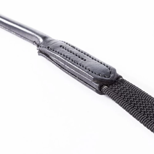 Kavalkade Rolled Rubberized Reins with Stops have an elegant, refined look while delivering excellent grip and security. These flat, low profile reins have a rubber yarn weave and five leather hand stops on each side.