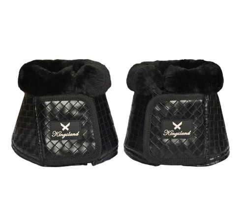 Kingsland KL Dean Bell Boots for horse overreach protection have an elegant basketweave PU shell with soft faux fleece trim. Versatile and unique bell boots for horses are easy care and durable. The interior is lined with neoprene to cushion and disperse impact.