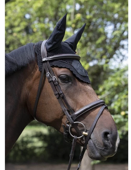 Acoustic Pro Fly Hood from LeMieux is hand crocheted for a classic look and features an embossed PU leather panel. A wider area behind the ears will accommodate bridles with ergonomic, shaped crowns. If your horse is affected by noises while training or competing, the LeMieux Acoustic Pro Fly Hood can help reduce those distractions for better focus and greater rider safety.