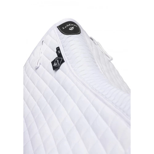 Self-Cooling LeMieux Saddle Pads feature innovative FeelCool Ice material, a cooling crystal that is part of the fabric weave. When your horse gets hot and starts to sweat, FeelCool crystals absorb heat and sweat and transfer it away from the horse’s skin. The greater the moisture level, the greater the cooling that takes place. The inner lining of the LeMieux Self-Cool Square Pad is the same soft, friction-free material. The pad offers lightweight, breathable, cooling comfort from top to bottom. The spine of the pad has a carbon mesh insert that also dissipates heat and prevents pressure on the back and withers.