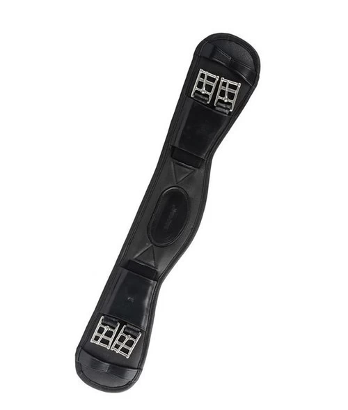 Designed by dressage riders with dressage riders in mind, this is the cushiest girth in our store! Nunn Finer’s Passage dressage girth is exceptionally comfortable, attractive, and durable. It is beautifully padded with luxurious leather and features a contour design, along with rolled edges to eliminate rubs. Elastic at both ends allows for even distribution of pressure. Stainless steel roller buckles with padding behind the buckles to help shield the horse from billet rubs. Black. Sizes: 20, 22, 24, 26, 28, 30, 32, 34.