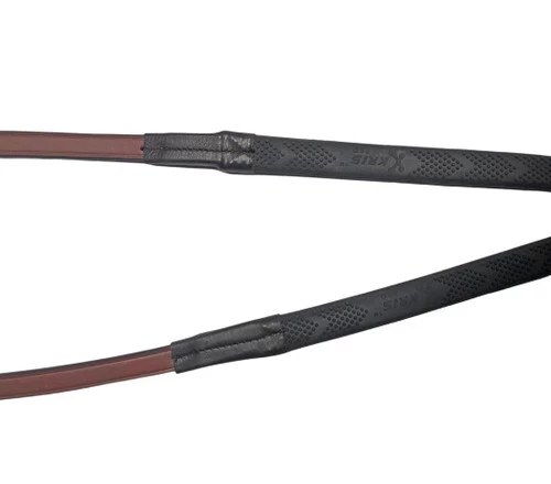 Pénélope US Rubber Reins in Hazelnut leather and soft rubber are the perfect match to the Pénélope US Bridle. Rubber reins are crafted with quality full grain leather and martingale stops.