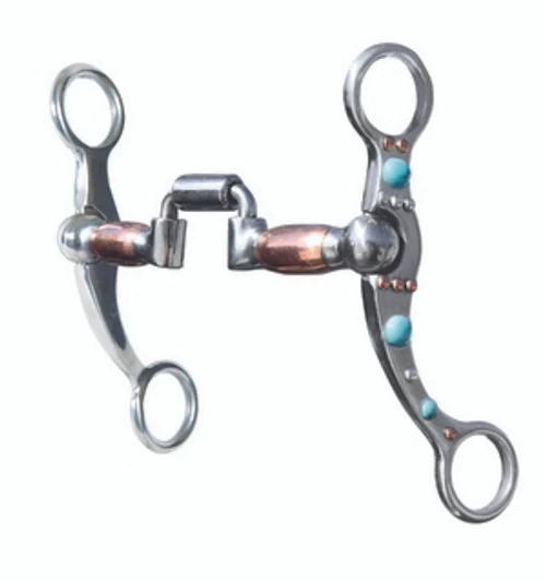 Professional’s Choice Turquoise Dot Bit with hinged port has a roller on the center piece. The port adds targeted palate pressure when needed. This bit has a 5.25″ mouth and 6″ cheeks. The mouth will rust when exposed to moisture, creating a sweet taste to promote salivation for your horse. Nice quality bit with a beautiful look! This Professional’s Choice Hinged Port Bit is eligible for . Click now for details!