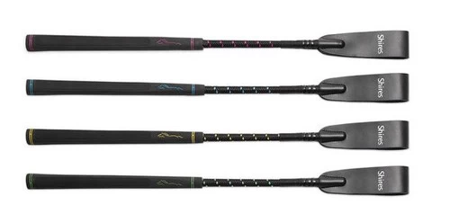 Topaz Jumping Bat from Shires is a nicely priced riding crop with snazzy style and a comfort golf grip handle. The tapered shaft is threaded with choice of three colors – Green, Blue, or Raspberry. Good size for kids and a low cost that makes it perfect for lessons and riding school programs. The Topaz jumping crop has a leather loop end in longer rectangle with Shires logo.