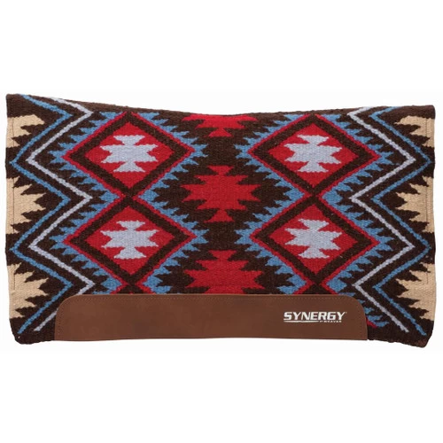 The Synergy Flex Contour Performance Saddle Pad in vibrant new Firestorm pattern offers advanced technology plus tried and true natural materials. The wool woven top gives the look of a classic Navajo blanket while the merino wool fleece lining and EVA Sport Foam inside deliver shock absorption and increased airflow.