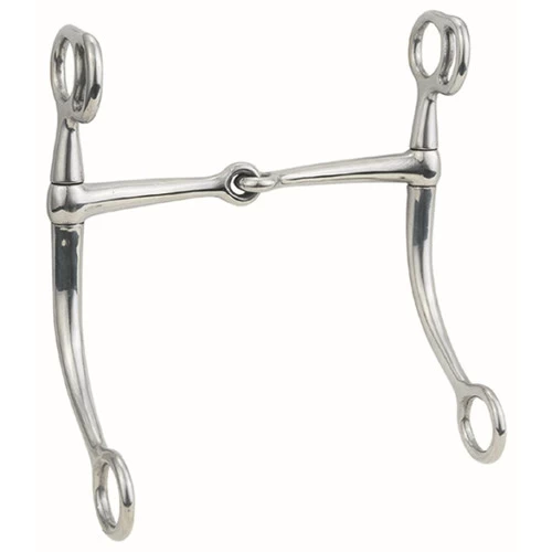 Draft Horse size Western Tom Thumb Bit from Weaver Leather has an 8″ curved shank and 6″ mouth. It is all-stainless steel construction and has slots for attaching the curb strap.